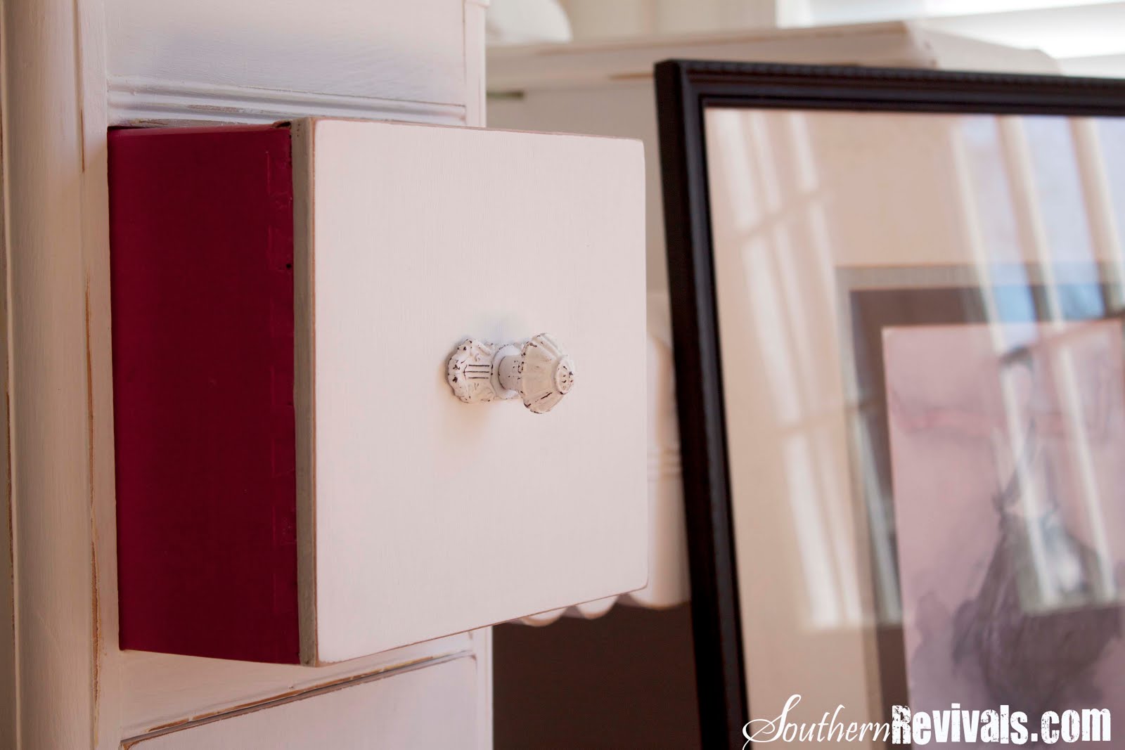 Gorgeous. I just got a similar one at a thrift shop that I am looking to redo for my daughter’s room. I love the pink peeking out of the opened drawers!
