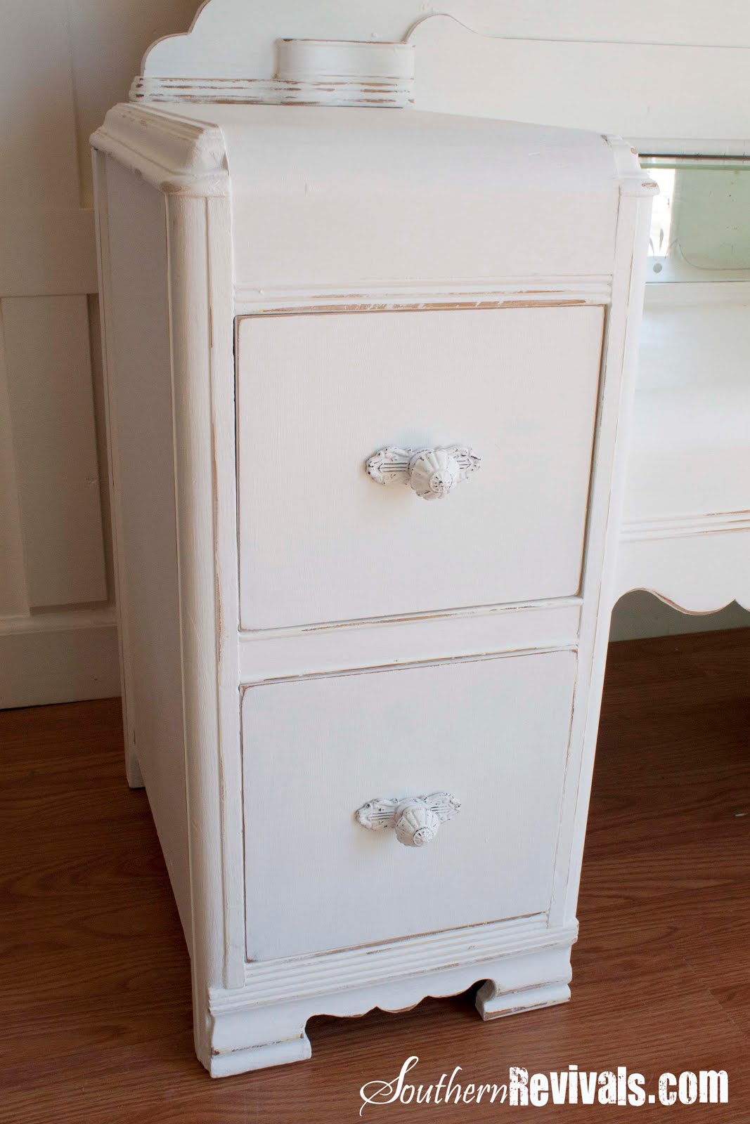 New shabby chic pulls to complete the look and give her a very dainty appearance which makes her perfect for a little girl’s room. Because that’s exactly where she’s going!