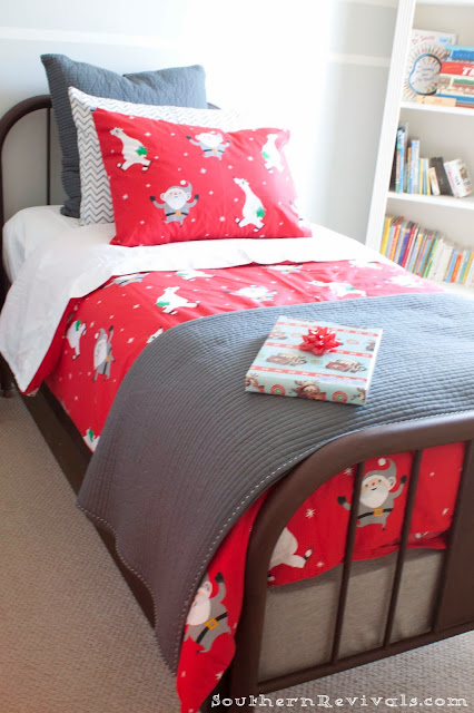 The boys’ rooms got a festive makeover this year. They have always had their own trees to decorate but this year I “splurged” on holiday bedding. This duvet set was a cool 30 bucks from H&M.com. Can’t beat that!