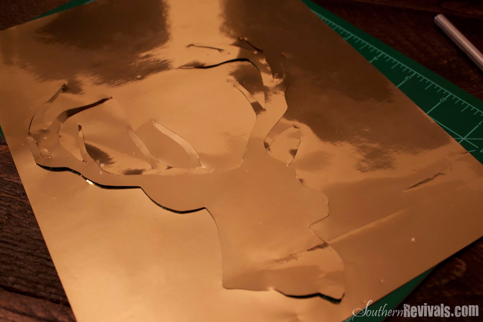 I printed out the deer silhouette and just placed it right on top of the Tulip Shimmer Sheet using double-sided tape.