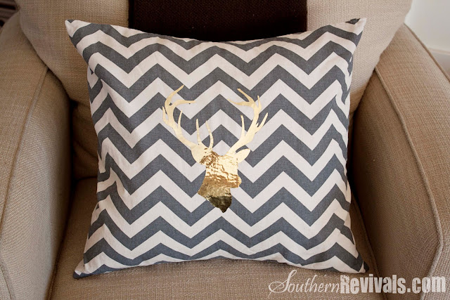 This pillow has everything that I love, a deer, a chevron and it’s shiny 🙂 You did a great job and with an Xacto knife! Love it!