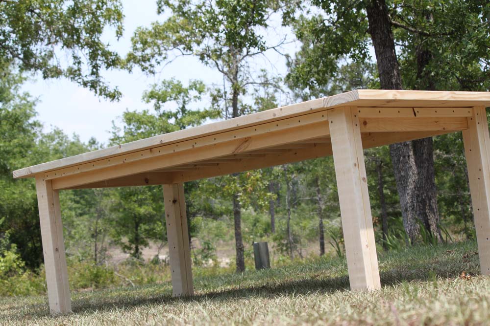 We built it with the same hands. It’s just as substantial. It seats 10, just like mine. So what’s the difference between mine and the amazing table above – besides that fact that my precious little ones’ fingerprints are underneath?