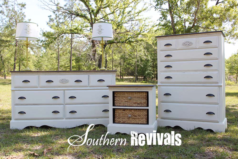 You might remember that I’ve been working on a full room revival in my SIL’s master bedroom {My brother lives there, too}. We started with some outdated but beautiful furniture that she was ready to toss.