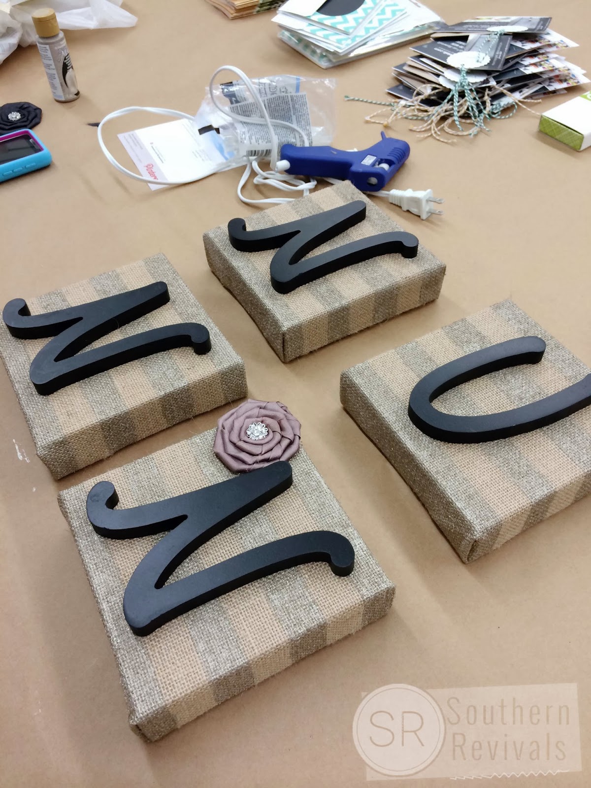 I chose the stretched burlap canvas project. I decided to use a wooden arrow for my project instead of a letter.