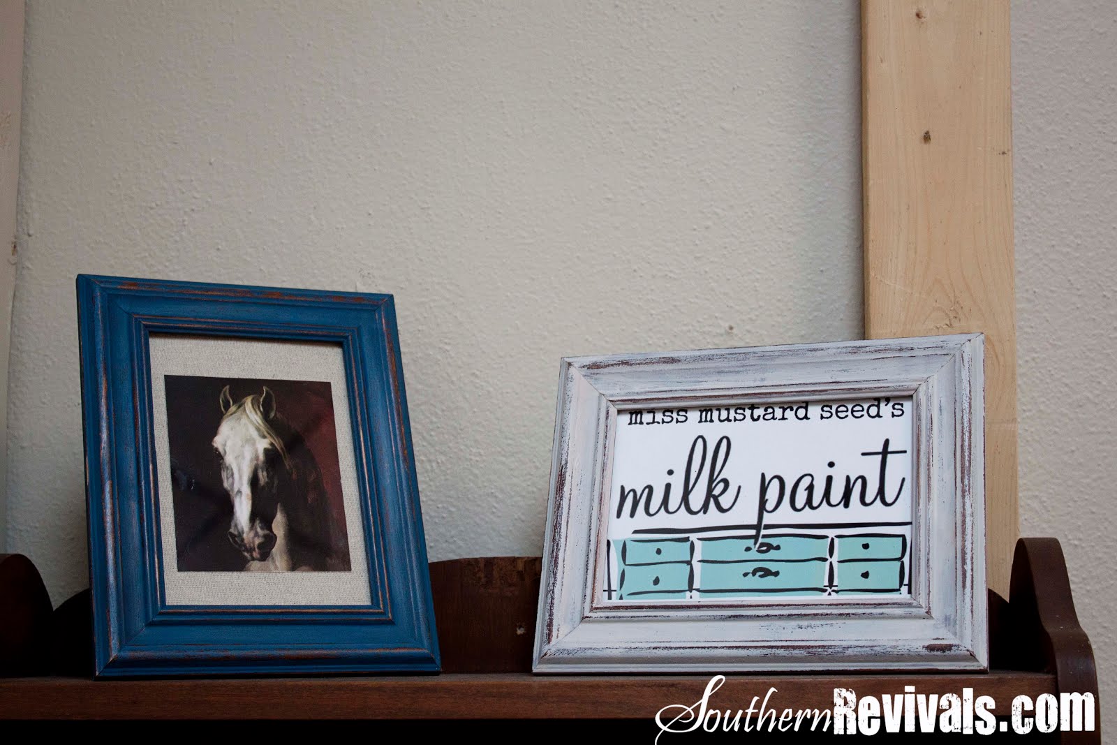 I got the classroom all set up the day before and decorated with various Milk Paint painted frames. These are examples of the project we’d be doing in class that day. {Pictured on right is Flow Blue, Left Ironstone}
