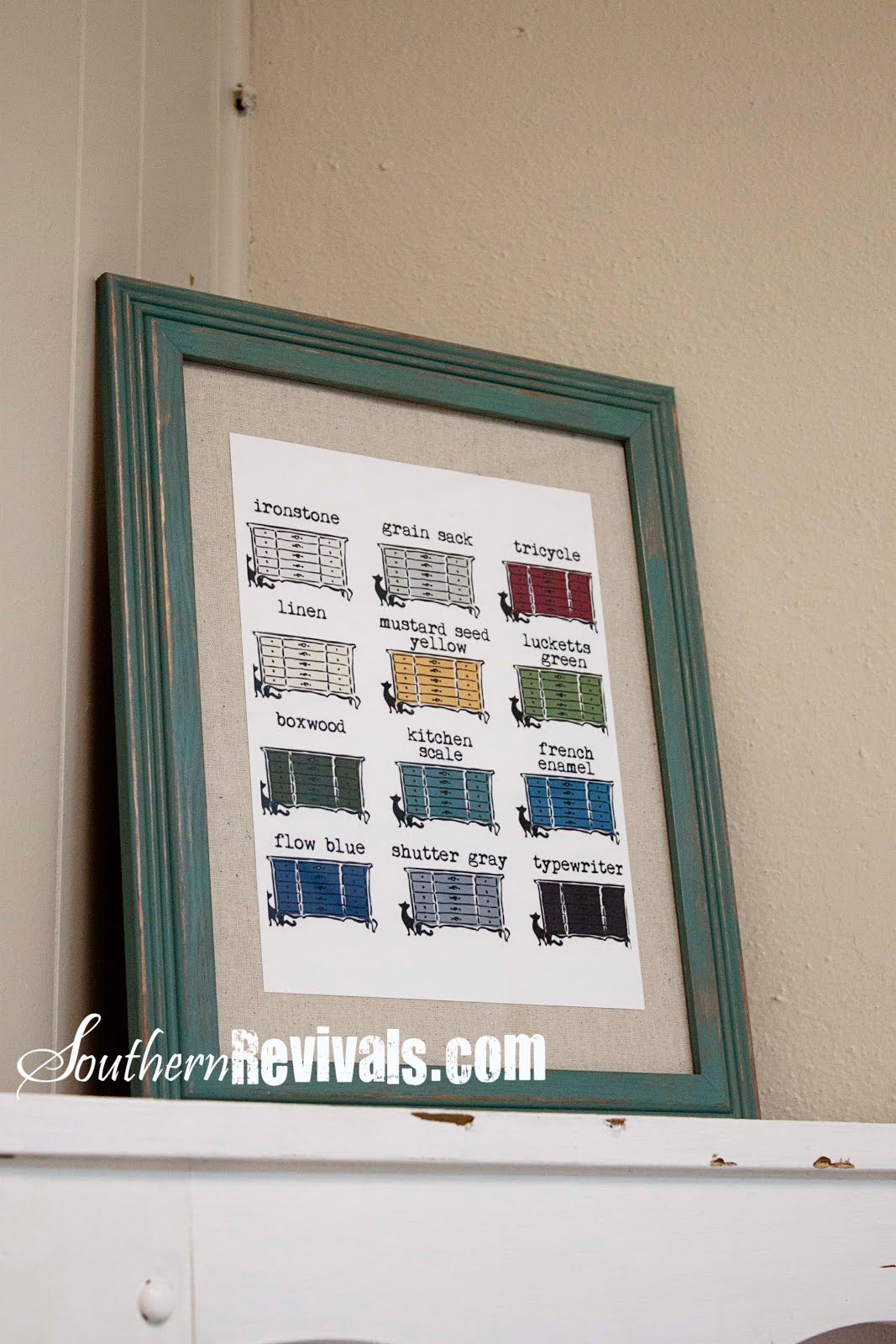 The Miss Mustard Seed Milk Paint color chart so everyone could pick their favorite to work with. {This frame was done in Kitchen Scale}