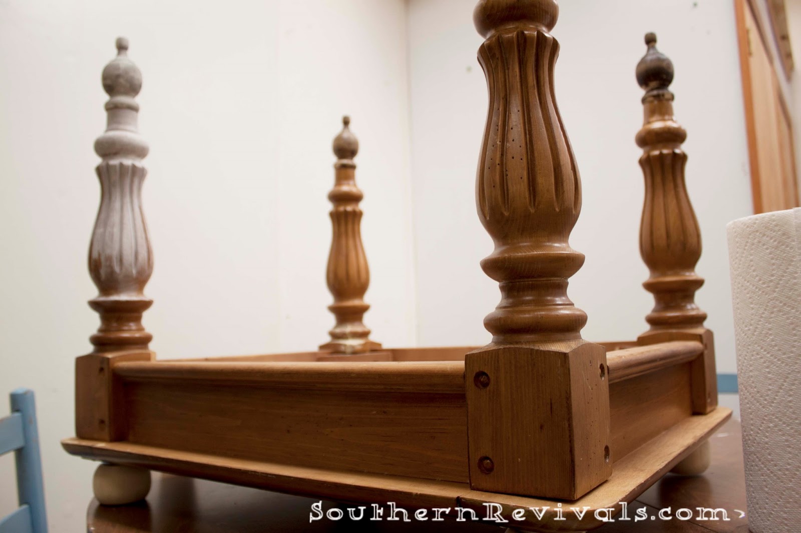 So it wasn’t until I got them home and started to work on them that I discovered this giant, wobbly crack in one of the legs on one of the end tables. Great. Now what will I do with a broken end table?