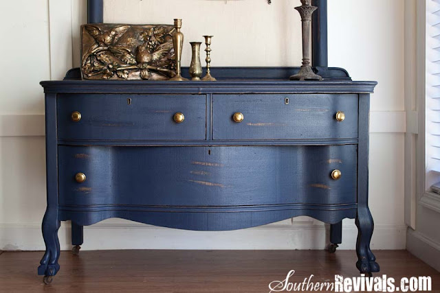Saw this on my Pinterest feed and was curious about the color, since I have some dark blue projects coming up. What I love more, though, is what you had to say about painting vintage/antique pieces. I agree — no sense in being a purist if you’re not keeping something for its dollar value. Put it to use! Who cares what something is worth money-wise if it’s not of true value to you!