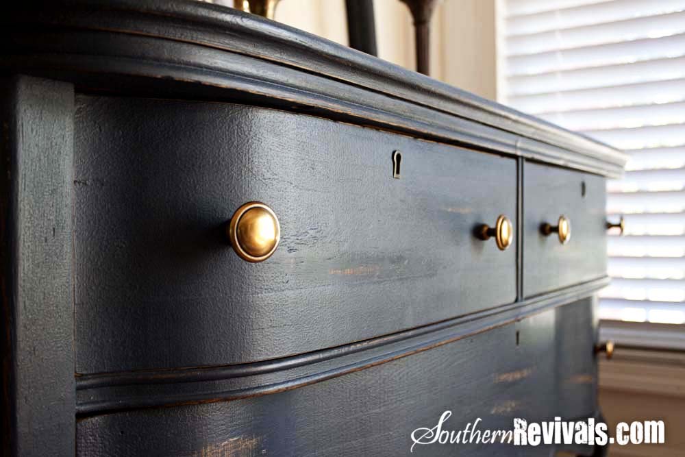 Then I added the paint and some new brass knobs and suddenly Uncle Joe’s dresser was transformed.