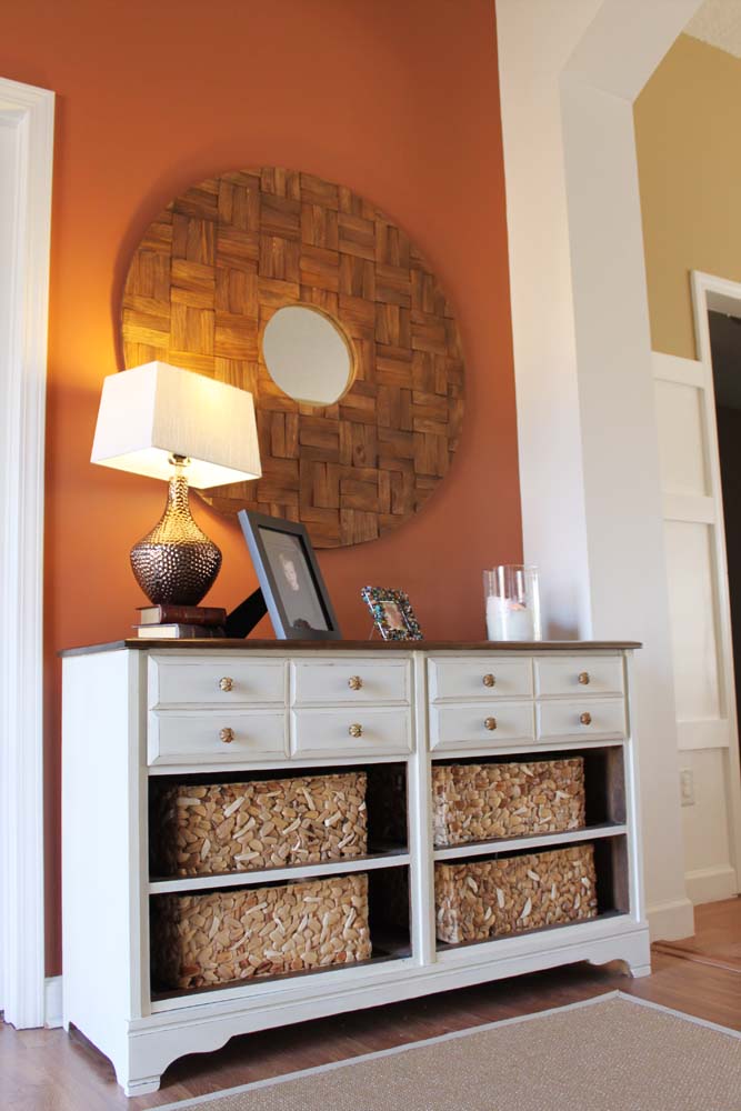 Great transformation! I love the idea of removing drawers and replacing with baskets. I wonder what Pottery barn would charge for something like this…