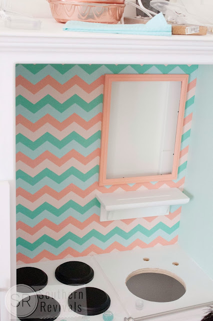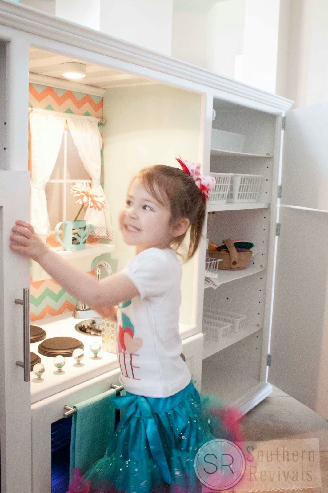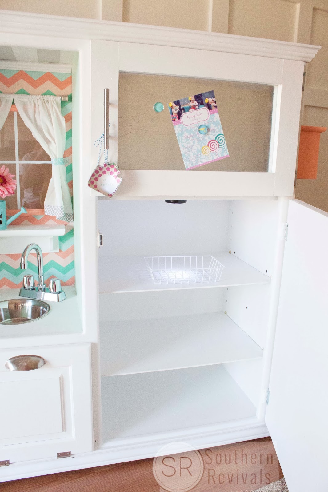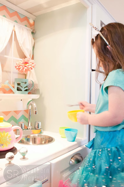 This is absolutely PRECIOUS! I LOVE the colors, the styling, all the nuances! You NAILED it! She adores her new KITCHEN! I have a 2 1/2 yr. old Granddaughter and she would absolutely go crazy over this! Stunning job!